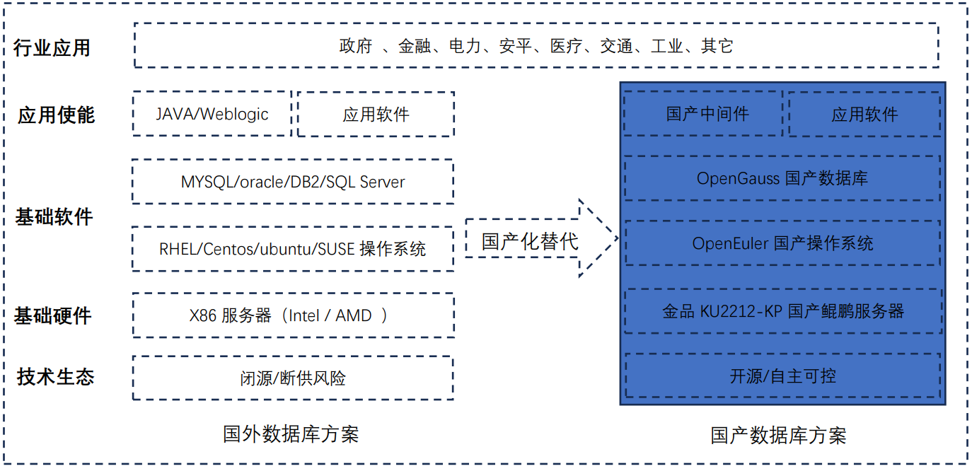 当金融、电力、交通、医疗等核心应用场景,采用国外硬件(Intel/AMD)、国外操作系统、国外数据库时,会面临安全漏洞、产品断供、价格绑定等一系列卡脖子问题,在当前局势下金品计算机推出“国产数据库一体产品”。