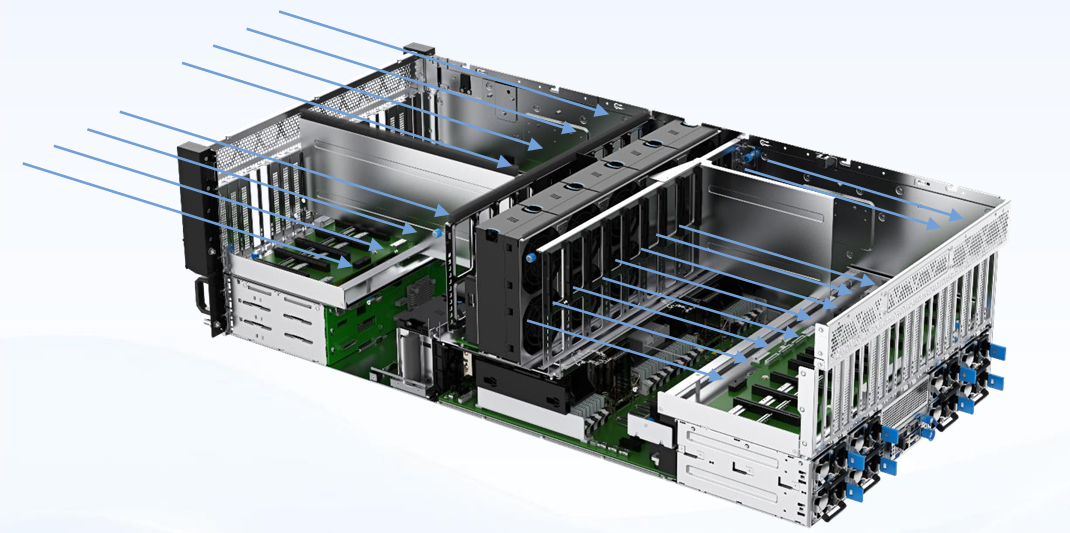 lCPU/GPU独立风道设计:上4U GPU散热与下2U CPU散热互相独立;