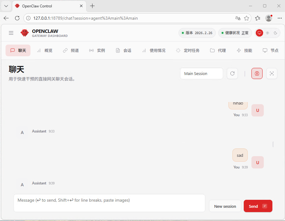 通过浏览器登录对话,如果没有接入第三方APP可在此窗口输入指令执行。