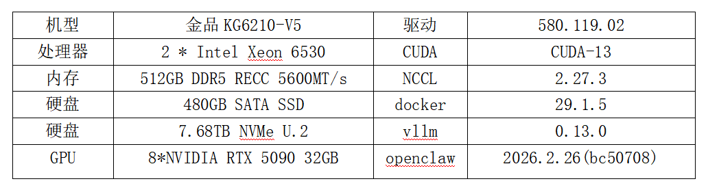 Openclaw 一体机软硬件环境: